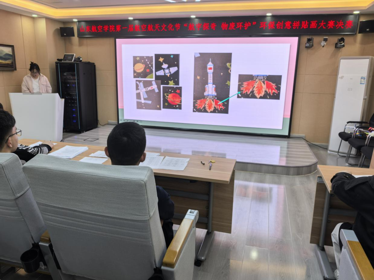 为积极响应学校航空航天文化节倡议,着力培育学生绿色低碳可持续发展理念,有效引导学生树立“绿色生活”的意识,3月23日,生物与医药工程学院在B8 - 114举行了山东航空学院首届“航宇探奇 物废环护”环保创意拼贴画决赛。本次比赛由辅导员满强、陈新宇,生态环境学部侯凯旋老师担任评委,各二级学院全体答辩选手参加。