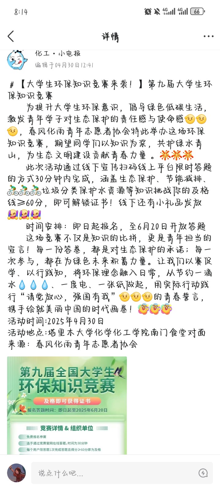 塔里木大学,张博聪环保知识竞赛校园活动