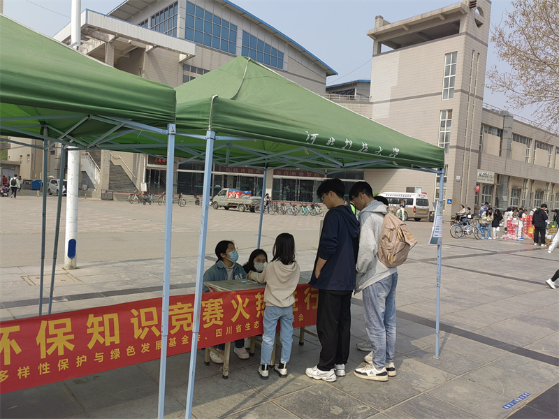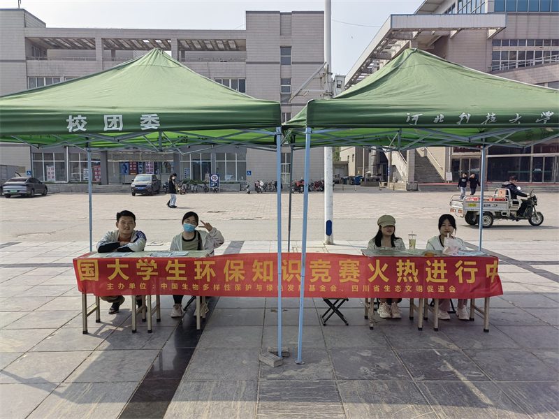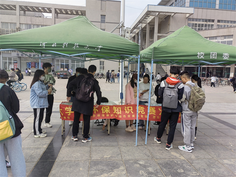 为贯彻落实习近平总书记在二十大报告提出推动绿色发展、促进人与自然和谐共生,牢固树立和践行绿水青山就是金山银山的理念,站在人与自然和谐共生的高度谋划发展,提升大学生环保意识,展现当代青年的环保担当与青春风采,影响和带动更多的人参与到环保事业中来,壮大中国环保工作力量。在2023年第54个"世界地球日"(4月22日)和第52个"世界环境日"(6月5日)来临之际,中国生物多样性保护与绿色发展基金会、四川省生态文明促进会、我爱竞赛网共同成立第七届大学生环保知识竞赛组委会,举办2023年第七届大学生环保知识竞赛。河北科技大学“根与芽”守护绿色环保协会作为全国大学生环保知识竞赛的协办单位之一,通过线上+线下宣传参与竞赛答题的方式,丰富了同学们在环保方面的知识储备,在答题的同时获得属于自己的小奖品,有力地推动了环保理念的普及与深化。河北科技大学“根与芽”守护绿色环保协会也将继续践行绿色发展理念,营造浓厚的环境保护文化氛围,为提高大学生的环保意识,保护美化生态环境做出应有的贡献。